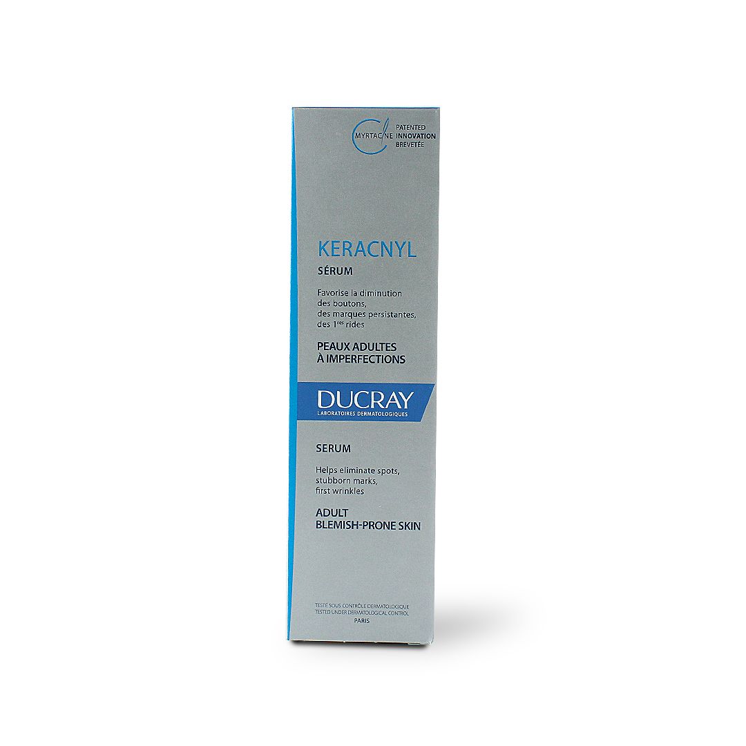 Triple-action care for acne-prone skin in adult women, Keracnyl serum is true daily skin care that combines innovative and benchmark dermatological actives to offer unprecedented results for women with blemish-prone skin. It has triple action: anti-blemish, anti-mark and anti-aging action. With its milky texture, the Keracnyl serum successfully combines efficacy and pleasure in use. Ingredients: Myrtacine* / Azelaic Acid** / Vitamin Pp / Monolaurin / Glycolic Acid