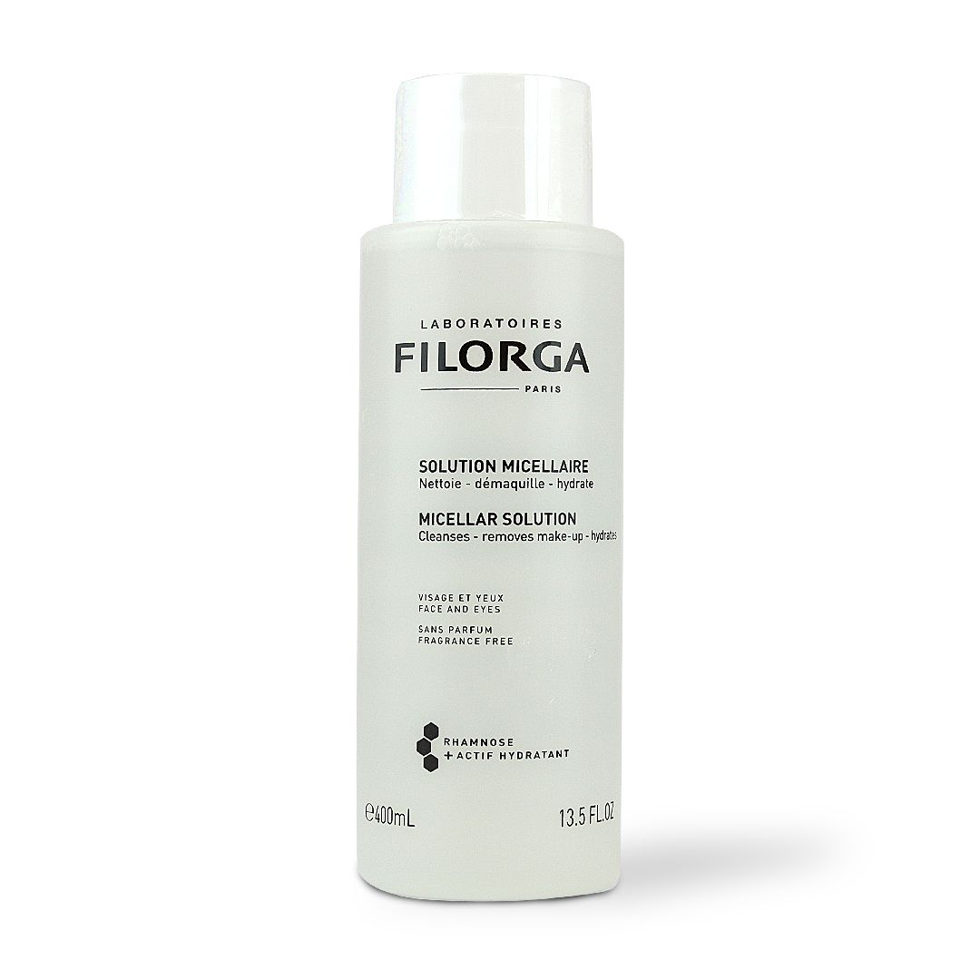 Filorga Micellar Solution Face & Eyes Fragrance-Free gently cleanses the skin from impurities and makeup while hydrating and soothing. It is a gentle daily cleanser enriched with moisturizing and soothing ingredients. Suitable for all skin types, this micellar solution is able to not only gently cleanse the skin from impurities and makeup but also hydrate and soothe the skin. With Rhamnosoft, which has anti-inflammatory and also soothing properties it helps comfort and protect the skin. With Trehalose, which has water-binding properties helps intensely moisturize the skin and provides long-lasting hydration. And, due to the Micellar Technology, it can also gently but effectively remove impurities and makeup while respecting the skin's natural protective film. All in all, it offers a quick and practical way to gently but effectively cleanse the skin and lend it a pleasant feeling of moisture and comfort Ingredients: Aqua (Water, Eau), Propanediol, Sodium Citrate, Trehalose, Disodium Edta, Peg-6 Caprylic/Capric Glycerides, Zinc Pca, Cetrimonium Bromide, Citric Acid, Rhamnose, Glucose, Glucuronic Acid.