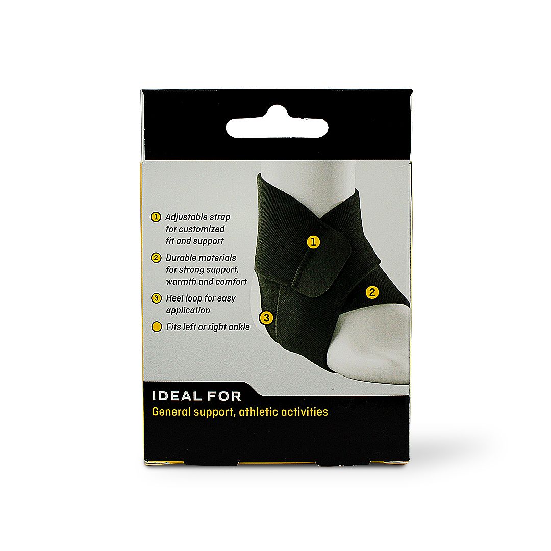 The FUTURO Sport Ankle Support is crafted from a supportive neoprene blend that delivers moderate support and retains heat. The wraparound design is easy to use and adjustable features let you customize your fit. Reach for the FUTURO Sport Ankle Support to give you the support you need to stay in the game. Durable neoprene-blend material for strong support, soothing warmth, and comfort. Adjustable strap for customized fit and support. Heel loop for easy application. - Moderate-support design offers customizable levels of compression and support. - Helps support stiff, sore, or injured ankles. - Provides soothing heat retention and wraparound design for a personalized fit.