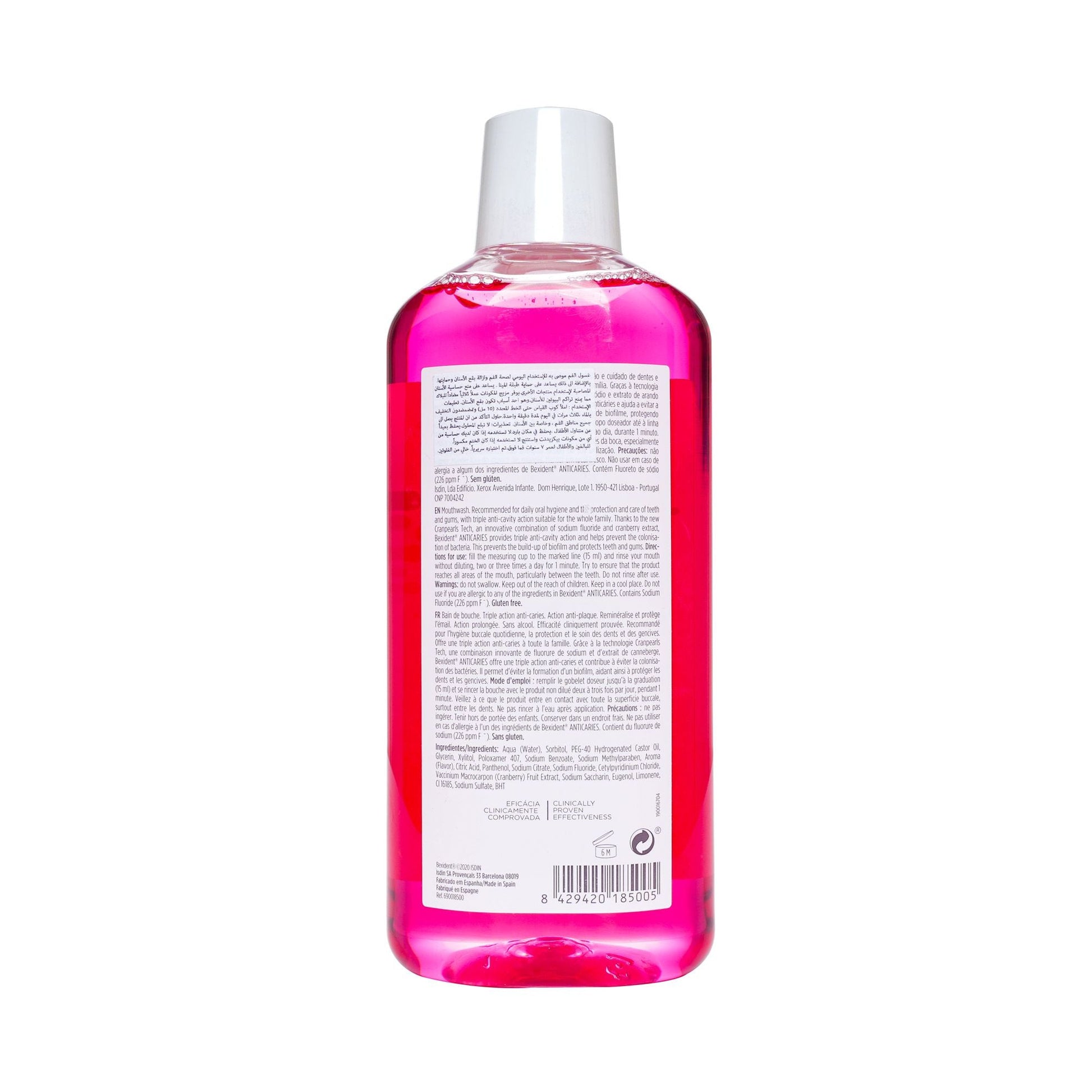Isdin Bexident Anticaries Mouthwash is the first mouthwash that offers a triple anti-cavity action and helps to prevent the colonization of bacteria. The formula contains the new Cranpearls Tech, an innovative combination of sodium fluoride and cranberry extract. Cranberry extract is a natural component whose active substance is proanthocyanidin. Several studies have shown it has an anti-adhesive effect, helps to prevent bacteria colonization, and maintain the pH of the oral cavity.- Protects the teeth and gums