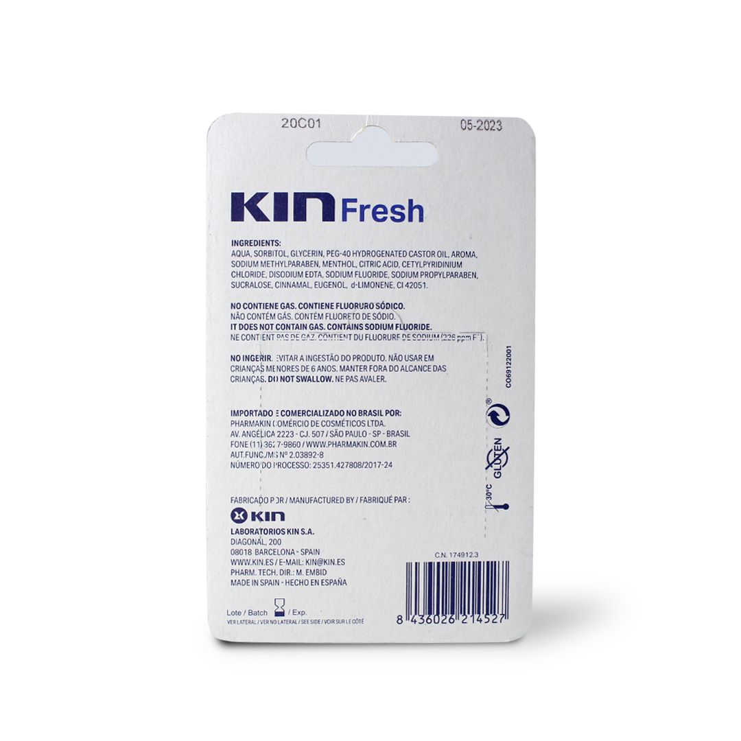Bad breath is a problem that affects a large part of the population. Throughout the day, the mouth accumulates remains of food, tobacco, coffee and other elements, which favour the development of bacteria that cause bad breath. Combat these discomforts with KIN Fresh toothpaste. Its high content in fluoridewill help you prevent the appearance of caries and the formation of dental plaque and will eliminate bad breath by providing a prolonged sensation of freshness.