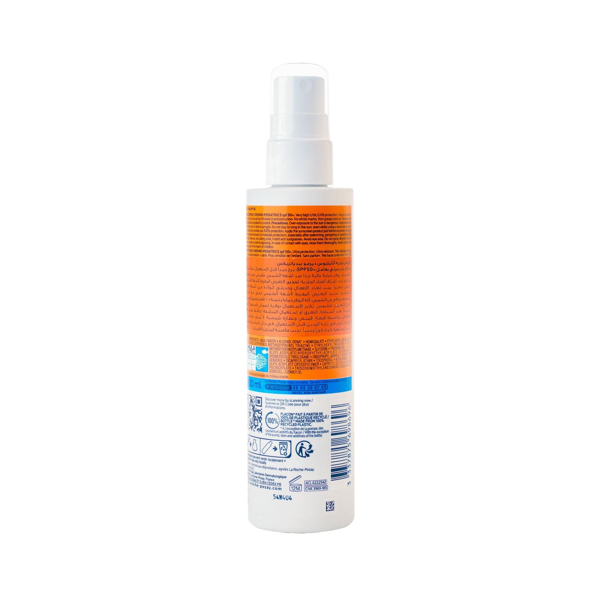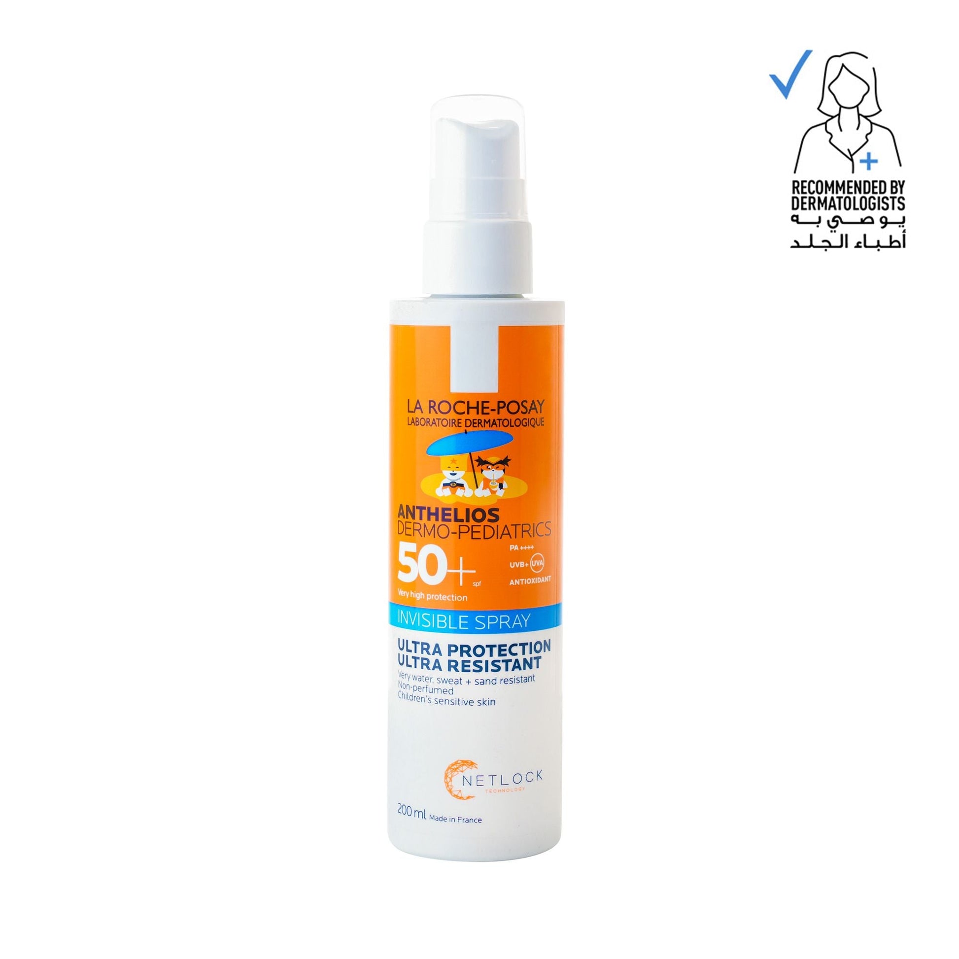 ANTHELIOS DERMO-PEDIATRICS INVISIBLE SPRAY SPF50+/ UVA-PF 36 provides broad spectrum high protection (UVA, UVB) and helps protects against damage caused by infrared and pollution. The formula forms a strong network of protection providing homogenous, non-migrating, non-greasy and very resistant protection. * SPF50+ sun Protection for children. * Lightweight, non-sticky texture. * Ultra-resistant to water, sweat, and sand. * For Face & body. * For children's sensitive skin. * Tested under dermatological control. * Allergy tested. * Fragrance-free Ingredients: Aqua / Water