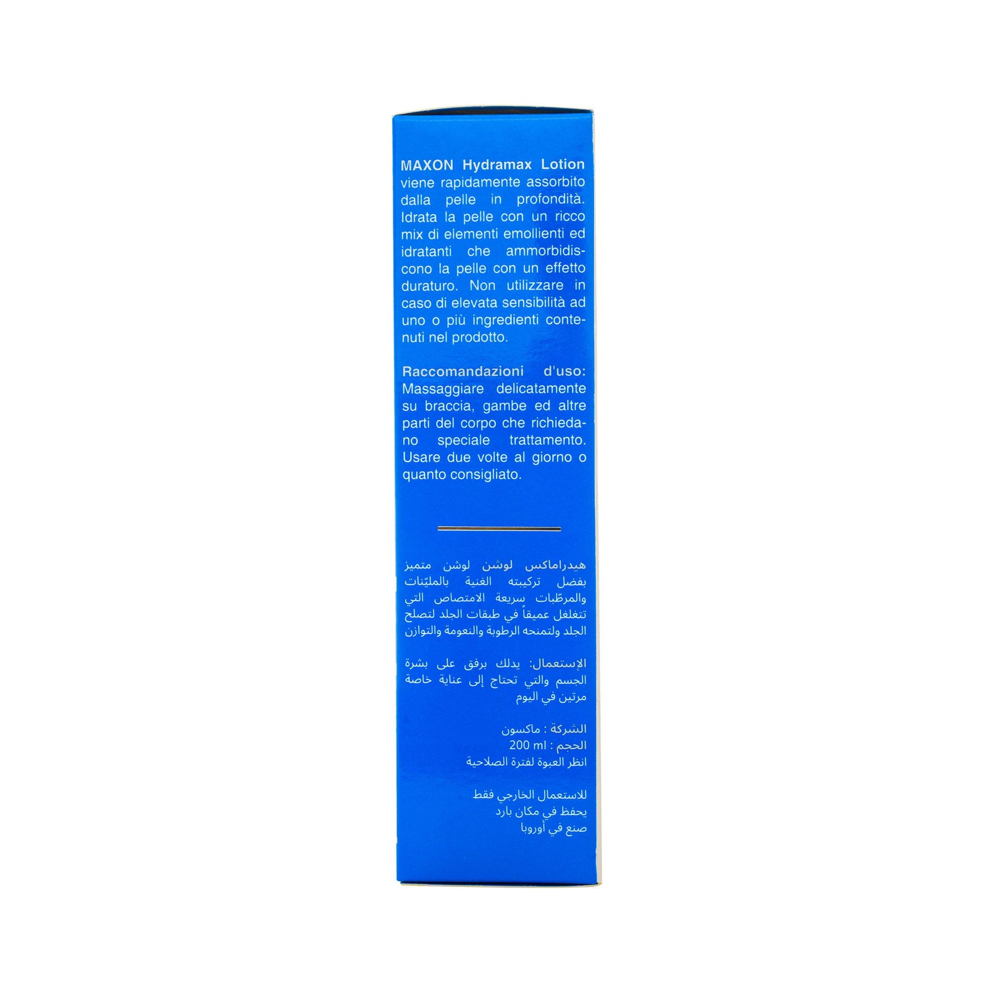 MAXON Hydramax Lotion is quickly and deeply absorbed by the skin. It hydrates the skin with a rich blend of emollients and moisturizers that work to soften the skin with a tong-lasting effect. Ingredients: Aqua, Glyceryl Stearate, Panthenol, Giycerin, Dircethicone, Peg Ioo Stearate. Shea Butter (Butyrospeolurn Parka), Xagthan Gym Passin Flom & Ohnechicone, Soluble Collagen, Teiraexium Edta., Cetyl Alochol, Mineral Oil. Sirrmonl-Sia Chicon:1S (Jobe) Seed Oil. Hyaluronic Acid, Caprylof Corot Triglyceride, Lanolin Alcohol, Niagnamgo, Fragrance, Carbomer, Sodium Hydrochloride