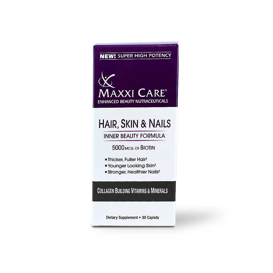 MAXXI HAIR, SKIN & NAILS superior dose of Biotin 5000 mcg with Minerals & Amino Acids. Enhanced Beauty Nutraceuticals for Hair & Nail to support vibrant hair & healthy nails. Contains essential sulfur amino acids and compounds for hair & nail growth.