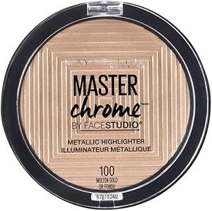 - Facestudio Master Chrome Metallic Highlighter Makeup: This highlighter powder drenches skin in a melted metallic finish; Maybelline's pearl pigments leave a reflective finish for a brilliant glowing skin