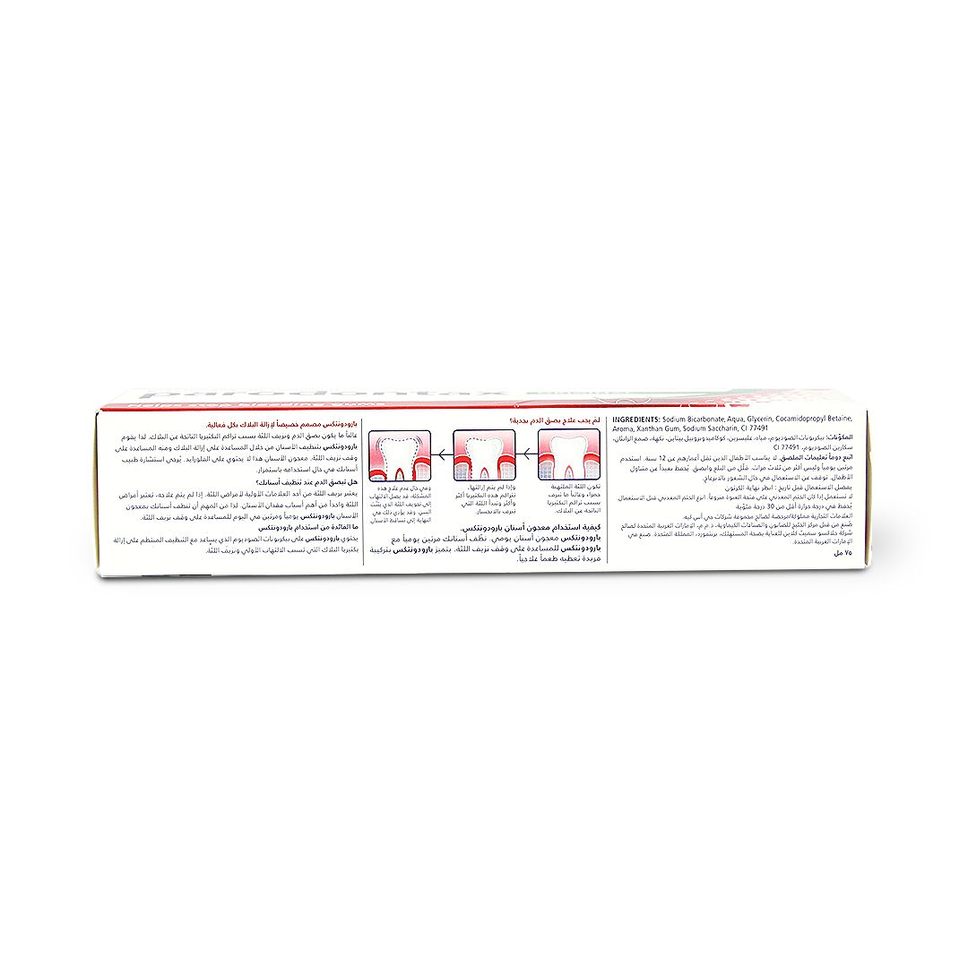 Parodontax Original Toothpaste contains a unique combination of ingredients which reinforce gums, tone them and support reduction of occasional bleeding. This toothpaste contains no fluoride, but still helps to remove the bacteria that can make gums bleed, keeping your gums healthy and your breath fresh. - Excellent plaque removal. - Clinically proven to help treat gum problems. - Freshens breath. Ingredients: Sodium Bicarbonate , Aqua, Glycerin , Cocamidopropyl Betaine, Aroma, Xanthan Gum, Sodium Sasccharin
