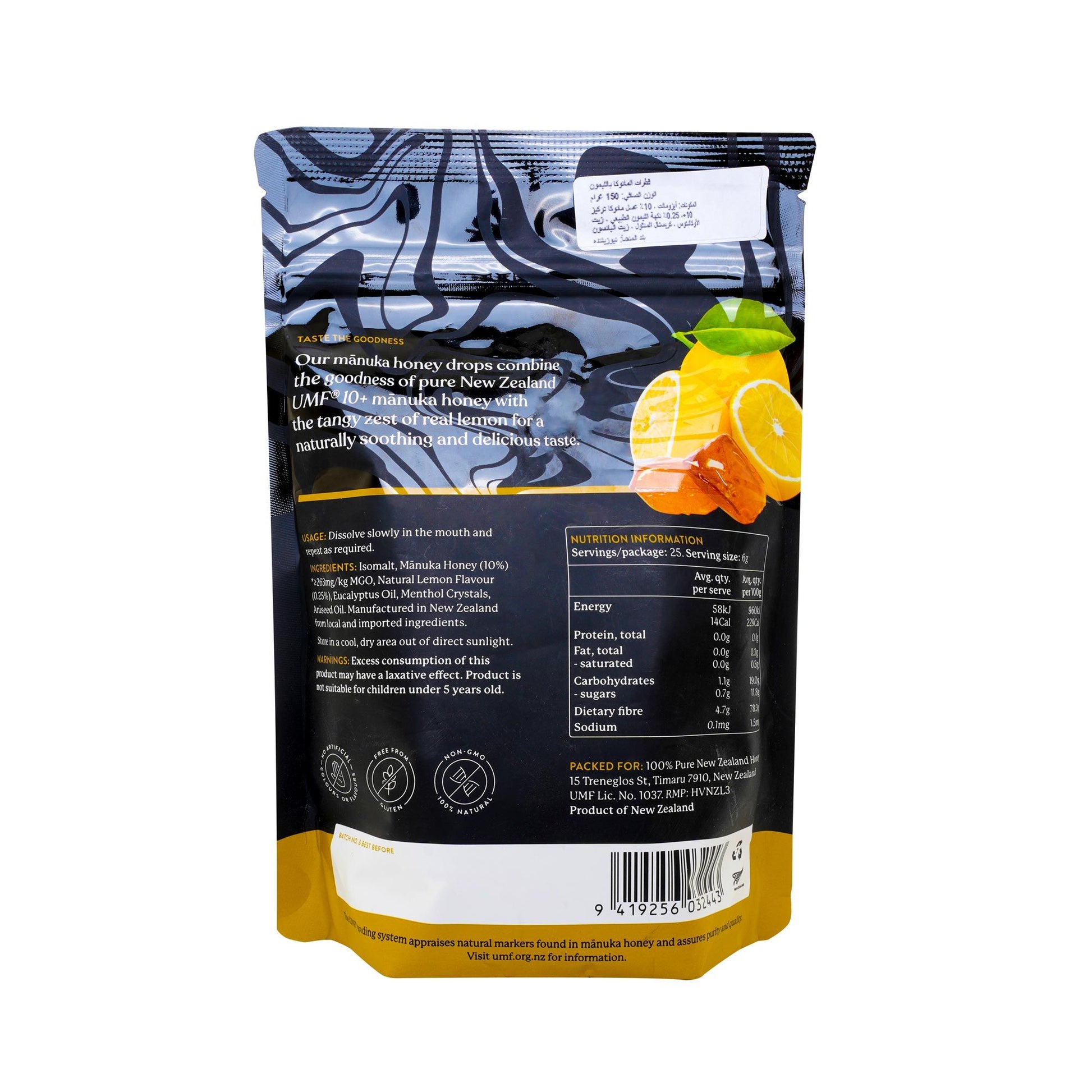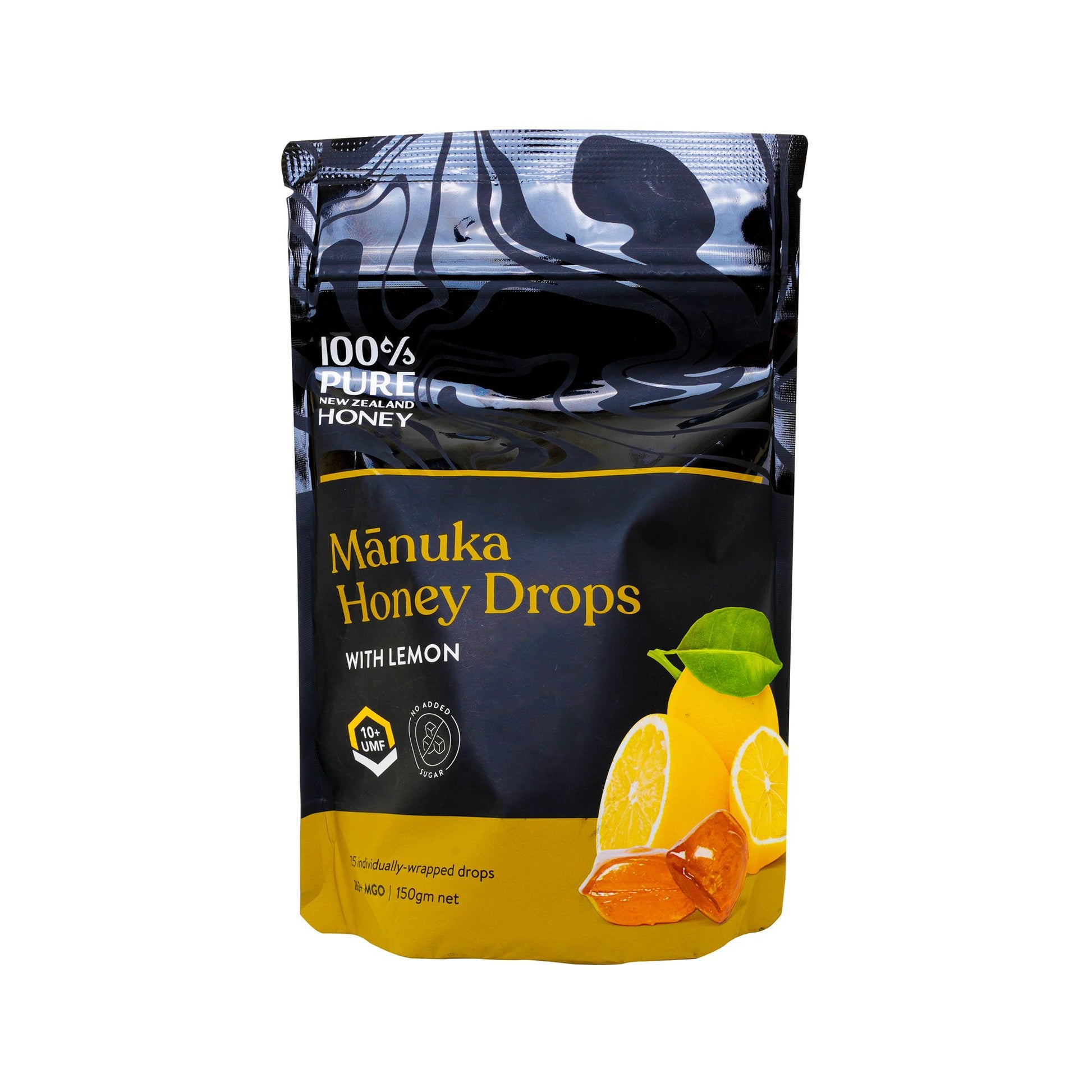 Manuka Drops 10+. Each pack contains 25 pieces UMF 10+.great to have it on the go and get the benefits of Manuka honey wherever you are. These Manuka drops contain 10% Manuka honey with a lemon flavor. - Superior taste & texture