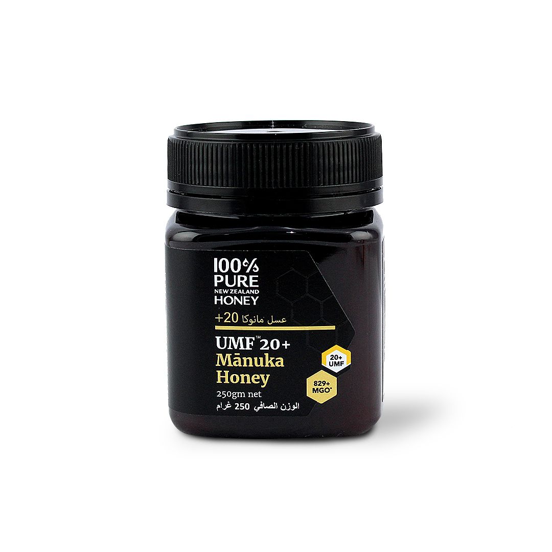 New Zealand UMF 20+ grade m?nuka honey is pure, high quality honey and its reputation continues to grow. This special honey has become one of the most researched honeys in the world. Pure Manuka Honey UMF 20+ is one of the rarest forms of genuine m?nuka honey. UMF 20+ is very high in MGO (minimum 829mg/kg) and other unique chemical markers. This honey is sourced from a small selection of premium locations that deliver the purest m?nuka honey. Very dark in colour, with a stronger taste and thicker texture. UMF 20+ is preferred by those who want the very best.