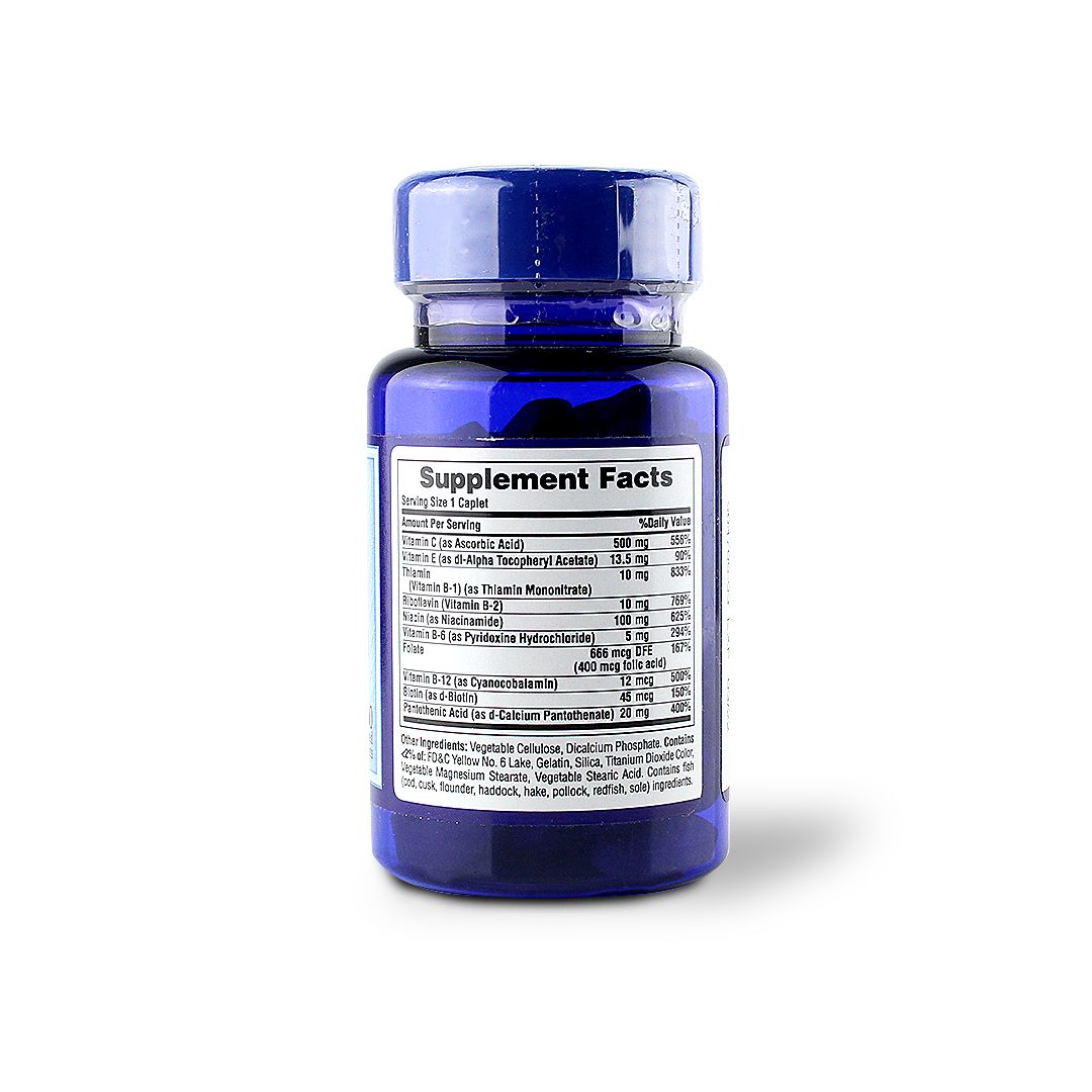 Stress Formula promotes energy metabolism and nervous system health. This exclusive combination contains all eight B-Complex vitamins plus Vitamins C and E. The B Complex is made up of several vitamins that work well together to support nervous system health and energy metabolism. Vitamins C and E promote antioxidant protection and immune system health. Adequate Vitamin B6 supports normal immune function. Ingredients: Vegetable Cellulose, Dicalcium Phosphate. Contains <2% Of: Fd&C Yellow No. 6 Lake, Gelatin, Maltodextrin, Polysorbate 80, Silica, Titanium Dioxide Color, Triacetin, Vegetable Magnesium Stearate, Vegetable Stearic Acid. Contains Fish (Cod, Cusk, Flounder, Haddock, Hake, Pollock, Redfish, Sole) Ingredients.