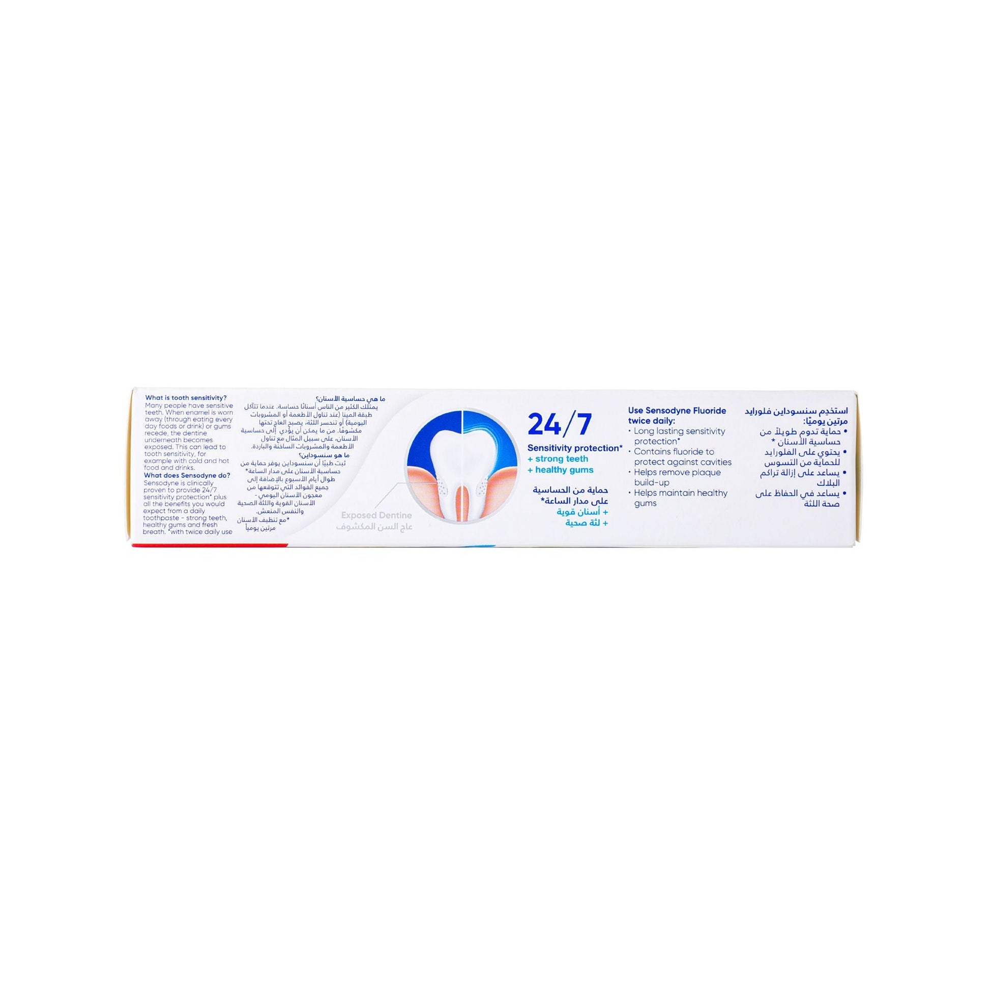 Sensodyne toothpaste builds ongoing protection against tooth sensitivity. It helps remove plaque, maintains healthy gums, and contains fluoride to prevent cavities. Its minty taste keeps the mouth feeling clean and fresh. Ingredients: Sodium Fluoride 0.315 % W/W , Potassium Nitrate 5.00%W/W