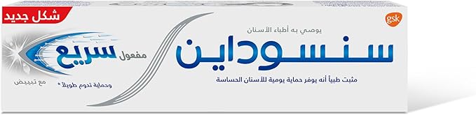 Sensodyne Rapid Action Whitening Provides Clinically Proven Relief From Sensitive Teeth In Just 60 Seconds*. It Relieves Tooth Pain When Directly Applying A Pea-Sized Amount To A Clean Finger-Tip And Rub Gently Into Each Sensitive Area (Max Twice Per Day) For 1 Minute Before Brushing. That'S Because It Is Formulated To Quickly Create A Barrier Over Sensitive Areas Of Your Teeth. When Used Twice Daily, It Provides Long-Lasting Protection From Sensitivity. *With Dab-On Application. Always Follow The Label. Brush Twice A Day And Not More Than Three Times, Minimise Swallowing And Spit Out. For Oral Use Only. Keep Out Of Reach Of Children. Not For Use By Children Under 12 Years Of Age, Unless On Advice Of A Dental Professional Or Physician. Sensitive Teeth May Indicate An Underlying Problem That Needs Prompt Care. If Symptoms Persist Or Worsen, See Your Dentist. If Irritation Occurs, Discontinue Use. Talk To Your Dentist Or Doctor As Soon As Possible, If You Experience Swelling Of The Mouth Or Face. Active Ingredients : Contains Stannous Fluoride 0.454% W/W, Sodium Fluoride 0.0721% W/W (1450Ppm Fluoride). Do Not Store Above 30 °C. Uk.