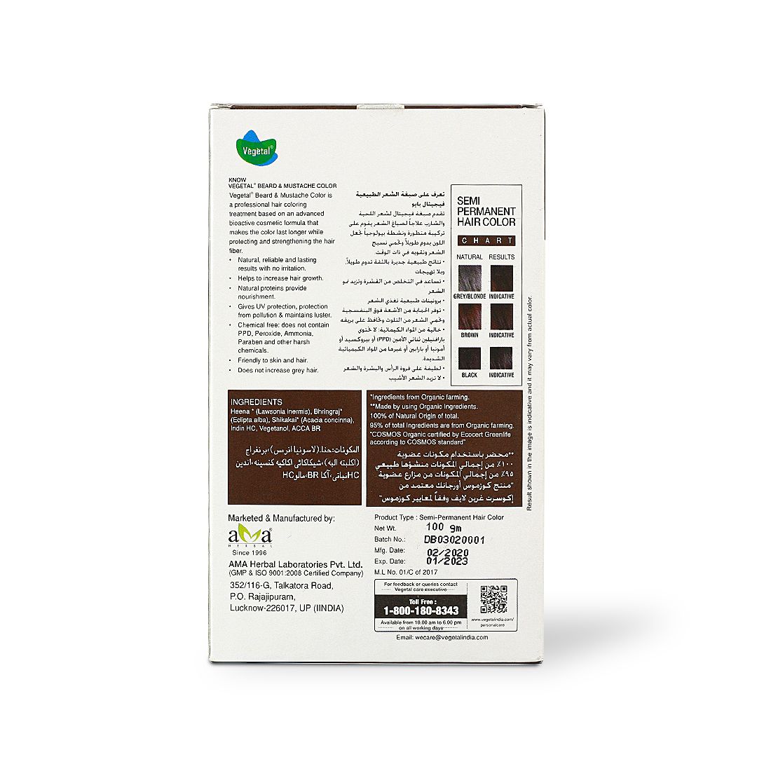 Vegetal Beard & Mustache Color is a professional hair coloring treatment based on an advanced bioactive cosmetic formula that makes the color last longer while protecting and strengthening the hair fiber Natural, reliable and lasting results with no irritation. It helps to increase hair growth, gives protection from UV, pollution and maintains luster.
